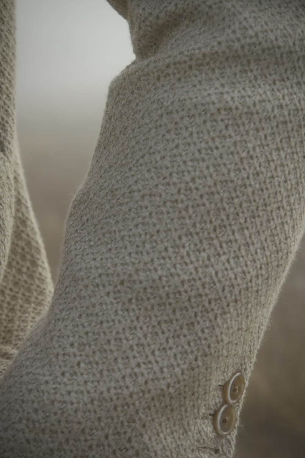 Der sleeke Anzug mit schlanker Silhouette. In dieser Ausführung als eleganter Einreiher mit breitem Revers, aufgesetzten Patch-Taschen, Handsaum am Hosenbein und einem gestrickten Fabric, der Komfort eine völlig neue Ästhetik verleiht.