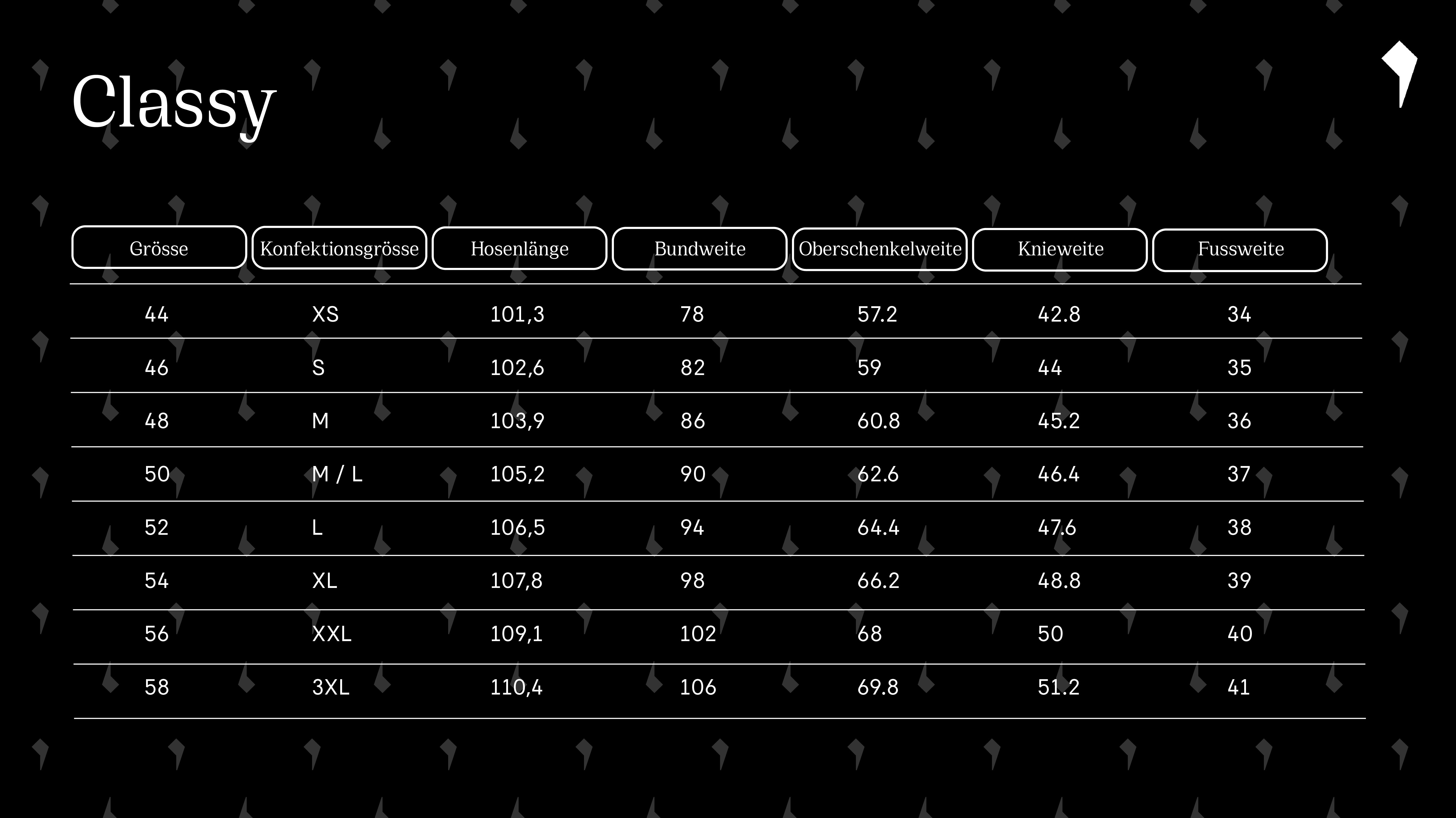Masstabelle Pants Classy