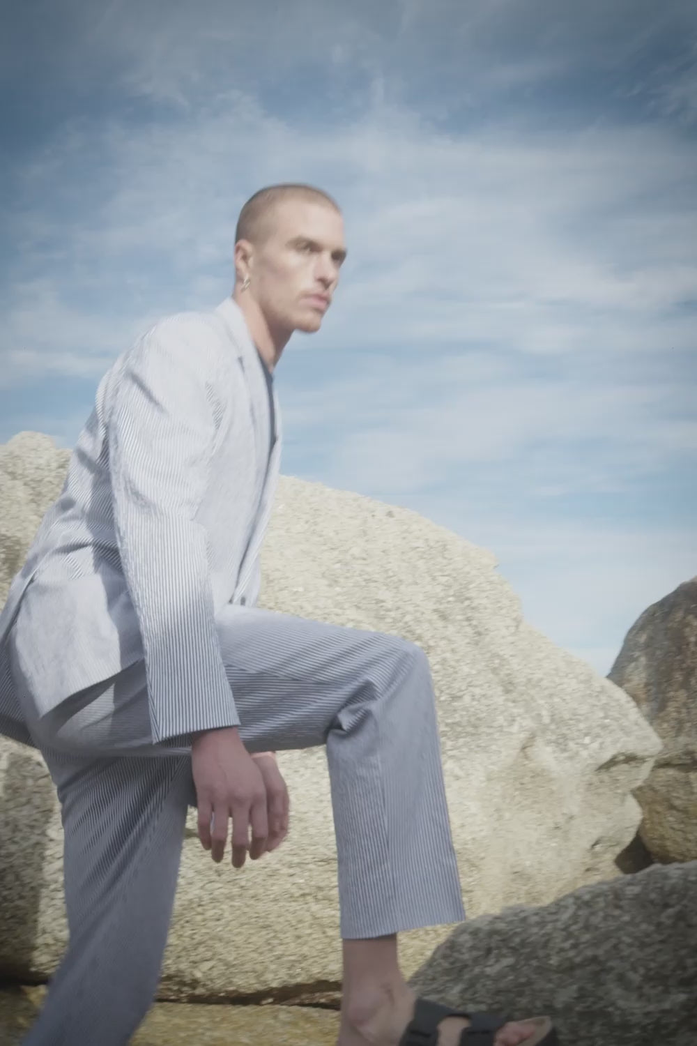 Der extra weite Oversized Anzug. In dieser Ausführung als klassischer Doppelreiher, Handsaum am Hosenbein und einem super leichten, gestreiften Seersucker-Fabric. Für alle Fashionistas, die den Sommer in Style feiern wollen.