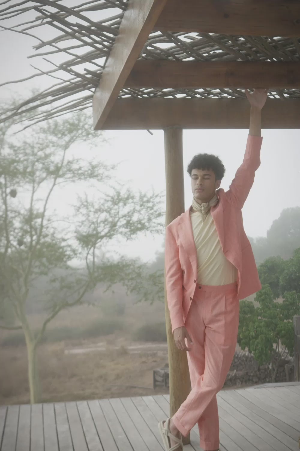 Der elegante Anzug mit der klassischen Passform. In dieser Ausführung als eleganter Einreiher mit breitem Revers, Umschlag am Hosenbein, aufgesetzten Patch-Taschen und einem sommerlich leichten Linen-Fabric in Coral.