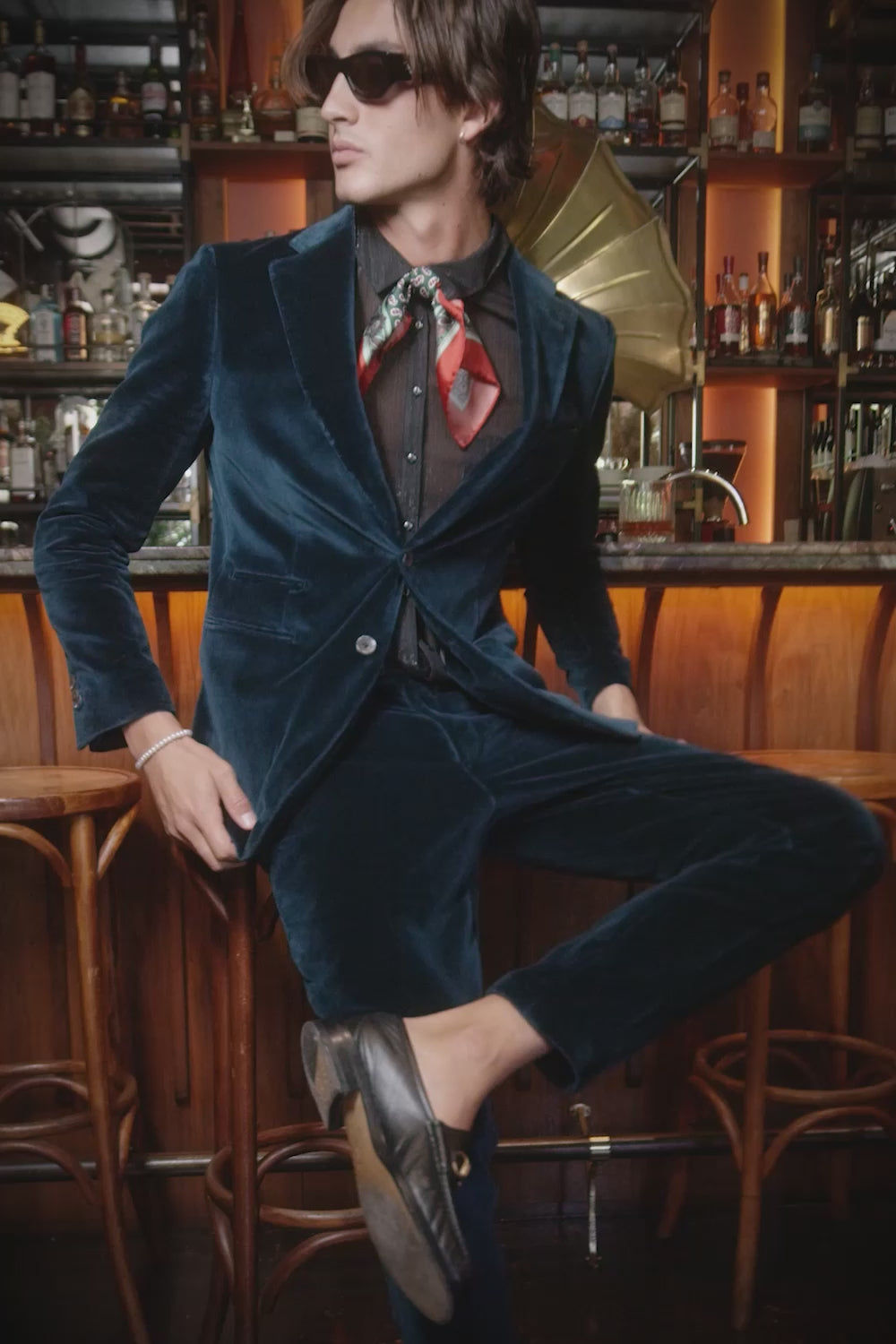 Der coole Anzug mit der klassischen Passform. In dieser Ausführung als eleganter Einreiher mit breitem Revers, Handsaum am Hosenbein und einem atemberaubenden Satin-Fabric in petrol. Der spezielle Anzug für besondere Anlässe.